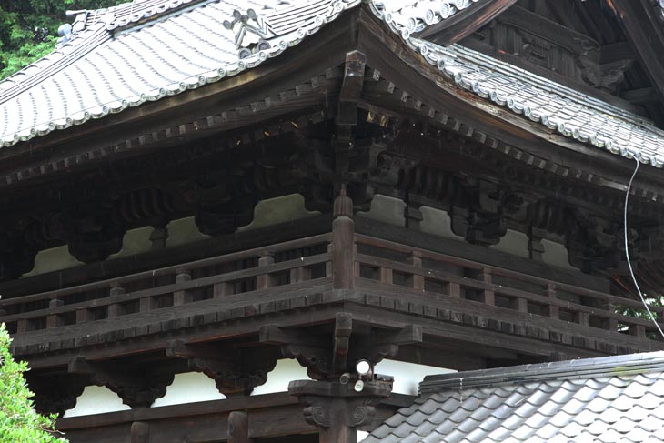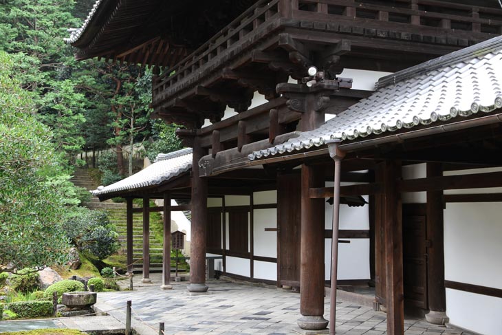 Der Galeriegang wird zur Treppe, die zum Ro-mon hinaufführt. Im Hintergrund der Hojo und der Hondo.