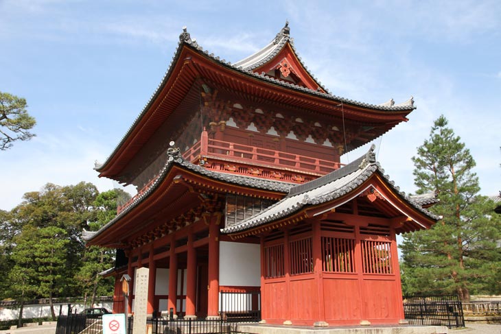 Im Westen der Hauptachse steht schräglinks vor dem Butsuden der Edo-zeitliche, 1696 errichtete Glockenturm (Shoro), dem klassischen Tempelgrundriß-Schema entsprechend. Die Ojikicho genannte Glocke ist wesentlich älter: Sie trägt inschriftlich die Datierung auf das Jahr 698 und ist damit die älteste Tempelglocke Japans mit gegebenem Herstellungsjahr. Deshalb ist sie berechtigterweise als Nationalschatz eingestuft. Wegen eines Schadens wird die originale Glocke heute im Hatto aufbewahrt, während draußen im Glockenturm ein neuerer Guß hängt. Ein zweiter Glockenturm steht vor dem Kuri-Eingang links vom Weg; der gehört aber zum angrenzenden Subtempel Shotaku-in, wie auch einige andere Subtempel ihren eigenen Glockenturm haben, z. B. auch der Gyokuho-in. Ein dritter Glockenturm steht auf der rechten Seite neben dem Toilettenbau zwischen Badehaus und Sutren-Bibliothek.