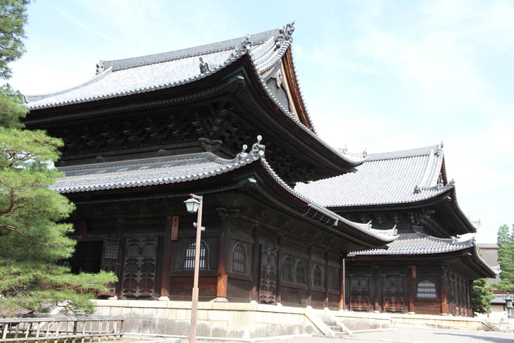 Der Shin-do ist eine kleine Halle mit Irimoya-Dach, an der der Verbindungskorridor zum Hatto endet. Er diente als Eingangs-, Warte- und Empfangsbereich und wurde in der Edo-Zeit im Jahre 1656 errichtet. Hier beginnt der innere Bereich des Tempels, zugleich jener Bereich, der museal und eintrittspflichtig ist. Jetzt beginnt sich die bislang so strenge Axialität aufzulösen, denn der größte Teil der Gebäude mit vielen Hallen, Korridoren und Innenhöfen liegt rechterhand ostwärts. In der Mittelachse steht noch der Kuri (Küchengebäude, wichtiges Kulturgut), aber auch nicht mehr exakt ausgerichtet. Der Kuri war nicht nur Küche, sondern auch persönlicher Lebensbereich der Mönche. Das Gebäude stammt aus der Edo-Zeit und wurde 1653 errichtet. Der Weg vom Minami So-mon führt geradewegs auf ein Tor in der Umfassungsmauer des O-Hojo-Gartens zu, das vom Typ eines Kara-mon ist und ebenfalls als Chokushi-mon angesprochen wird, Tor für die kaiserlichen Gesandten.
