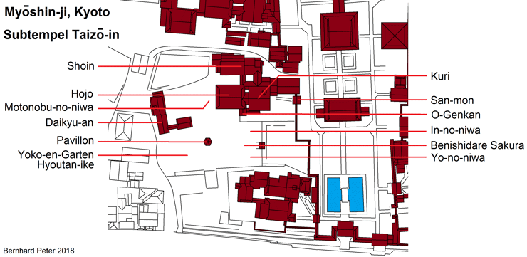 Subtempel Taizo-in, eigene Webseite: http://www.taizoin.com/en/ - http://www.taizoin.com/en/about/ - Karte: http://www.taizoin.com/en/highlights/#map mit Erläuterungen