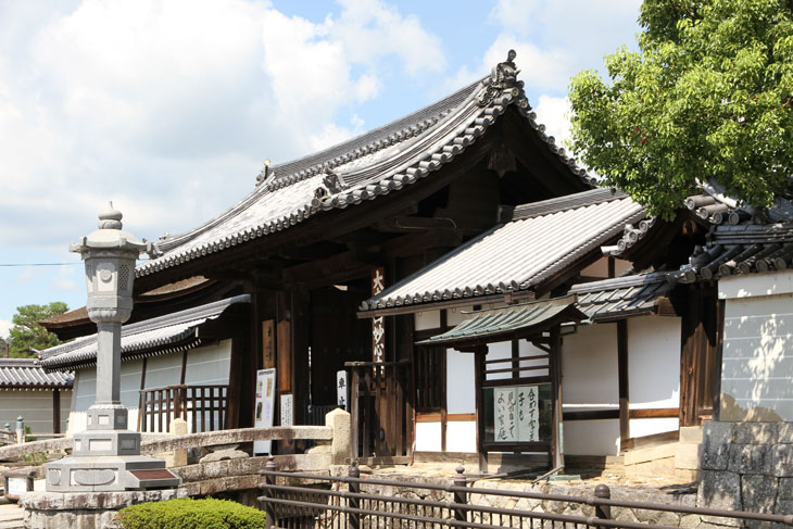 Nach 32 m Distanz erreicht man die Buddha-Halle (Butsuden, wichtiges Kulturgut), ein zweistöckiges Gebäude mit Irimoya-Dach und Katomado-Fenstern. Das Gebäude mißt ca. 22 m im Quadrat. Die Endpunkte der Rippen sind mit Onigawara verziert, Ziegel mit einer Maske eines Oni (Dämon, Geist). Diese Halle wurde in der Azuchi-Momoyama-Zeit im Jahr 1583 erbaut. Hier wird das Hauptkultbild des Tempels aufbewahrt und verehrt, eine Figur des Shaka Nyorai (Buddha Shakyamuni, historischer Buddha), flankiert von Kasho und Ananda. Deshalb trägt das am Büro des O-Hojo erhältliche Goshuin des Tempels auch die Worte "Shaka Nyorai". Die Buddha-Statue wurde 1827 geschaffen.
