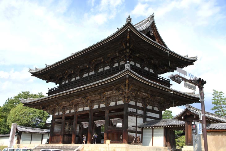 Chu-mon und Haupthalle. Die seitlichen Gebäude bilden zwei