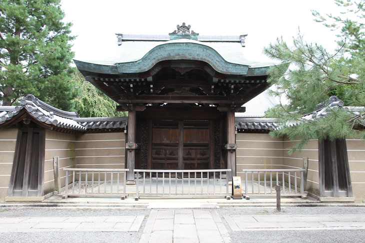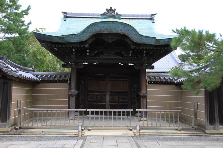Eine weitere zum Tempel gehörende Struktur muß man etwas suchen gehen: Das sogar als wichtiges Kulturgut klassifizierte Tor Omote-mon steht weitab im Südwesten, am Ende der Straße Nene no Michi und hinter dem Kotaji-Park, und dann die große Straße noch 50 m nach Westen. Dort steht das mit einem geziegelten Satteldach versehene Tor heute kontextlos nördlich der Straße neben modernen Wohnhäusern. Es wurde in der Azuchi-Momoyama-Zeit errichtet und stammt aus der Burg Fushimi. Beachtenswert sind die von Hidari Jingoro ausgeführten Schnitzereien von Füchsen und Drachen. In der Burg Fushimi hatte das Tor als So-mon gedient.