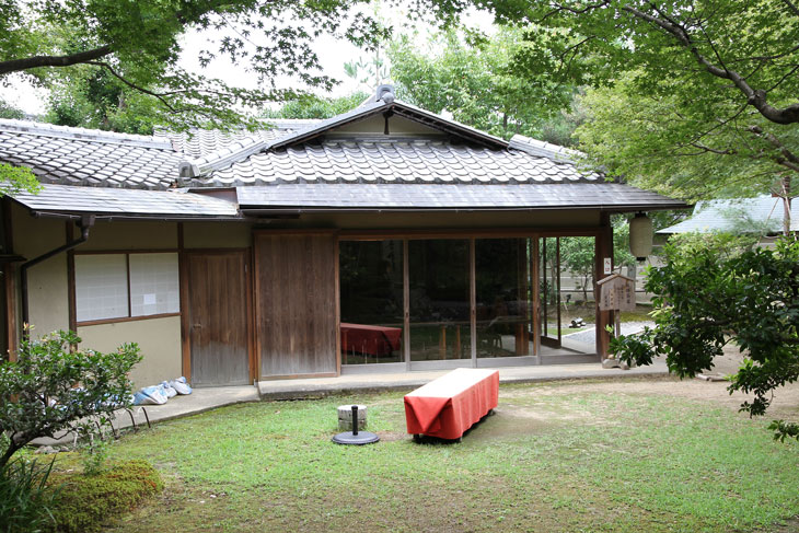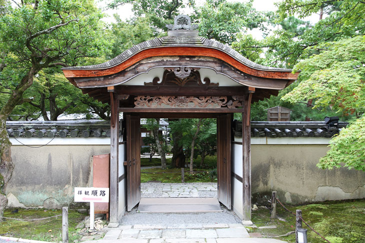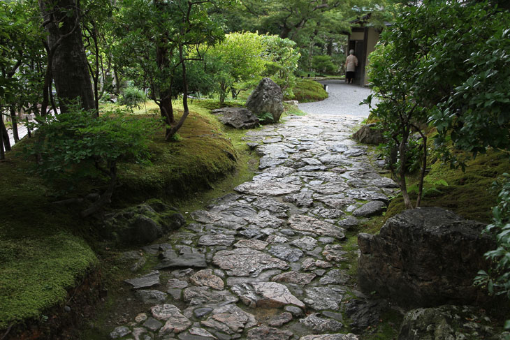 Plattenweg hinter dem Eingang in Richtung Teehaus Kogetsu-an (im Hintergrund)
