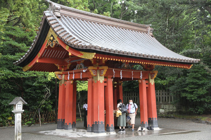 Das rituelle Reinigen an speziellen Wasserbecken gehört zur Pflicht des spirituell motivierten Besuchers bei einem Besuch eines Shinto-Schreines. Daher befindet sich auf dem Gelände stets bereits in der Nähe des Tores ein Wasserschöpfbecken, das Chozubachi (Chouzubachi) oder auch Temizuya. Wenn die Schrein-Anlage etwas aufwendiger gestaltet ist, steht das Becken in einem kleinen Pavillon, einem allseits offenen Gebäude mit einem Dach über dem Waschplatz. Dieser Pavillon wird Chozuya (Chouzuya) genannt, und der Sinn des Daches ist es, die Besucher vor Witterung und das Wasser vor Dreck zu schützen und Vögel von der Benutzung des Wasserbeckens abzuhalten. Das Becken ist meist aus Stein, obwohl es auch einige Beispiele aus Bronze oder Keramik gibt. Diese Praxis stammt eigentlich aus dem Shintoismus, wurde aber von anderen spirituellen Richtungen aufgegriffen, so daß man diese Wasserbecken und Pavillons auch in buddhistischen Tempeln antrifft.