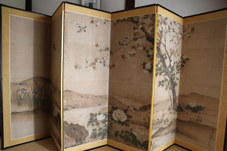Abb.: Kyoto, Funda-in-Tempel, ein Subtempel des Tofuku-ji-Tempels, sechsteiliger Stellschirm beim Genkan