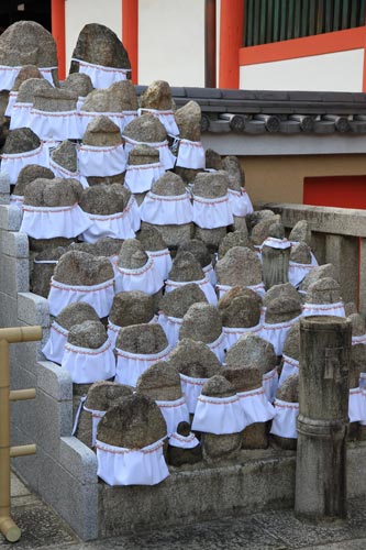 Kiyomizudera, Kyoto: Die Hyakutai-Jizo-do, Hundert-Jizo-Halle, enthält ca. 180 Jizo-Steinstatuen.