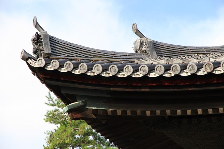Myoshin-ji, Kyoto, Subtempel Shunko-in, Details des Kuri-Daches, seitlich Hire, oben Toribusuma, unten Gato.
