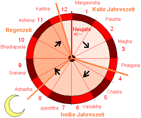 Mondmonaten. Die Jahreszeiten wechseln jeweils an Vollmond, nicht