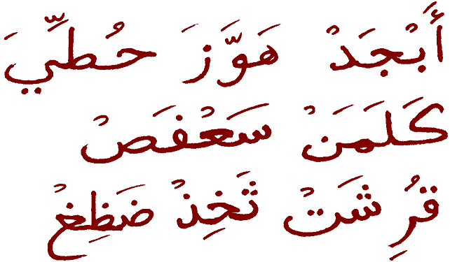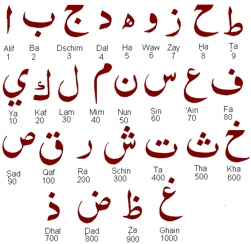 Buchstaben genannt, Alif-Ba-Dschim-Dal. Die selbe Reihenfolge