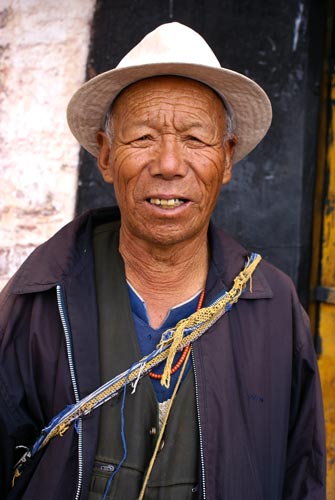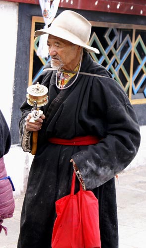 Leider ist der Weg nicht mehr von allzuviel alten Häusern gesäumt, die chinesische Verwaltung ließ die alten historischen Häuser so gut wie komplett abreißen und durch Neubauten ersetzen, manche durch Scheinfassaden "tibetisiert", andere nüchterne Zweckbauten billigster Qualität, mit schreienden chinesischen Reklametafeln, ein respektloser Umgang mit der historischen Bausubstanz und augenfällige Verachtung der traditionellen tibetischen Lebensweise.