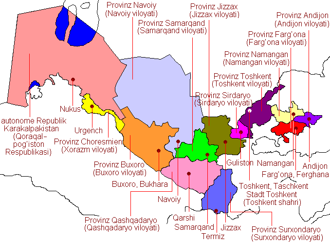 heutige Verwaltungsgliederung von Usbekistan