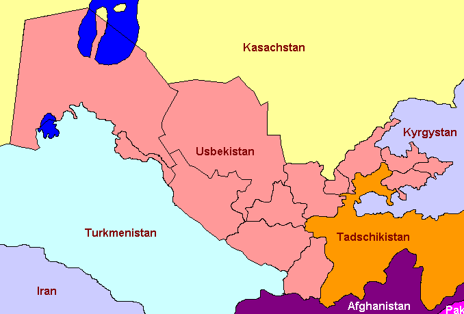 Usbekistan ist ein Binnenstaat mit 6221 km Grenzlänge, der selbst nur von Binnenstaaten umgeben ist. Seine Nachbarländer sind im Uhrzeigersinn: