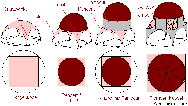 können die Zwickel zwischen Mauer und Kuppel auf verschiedene