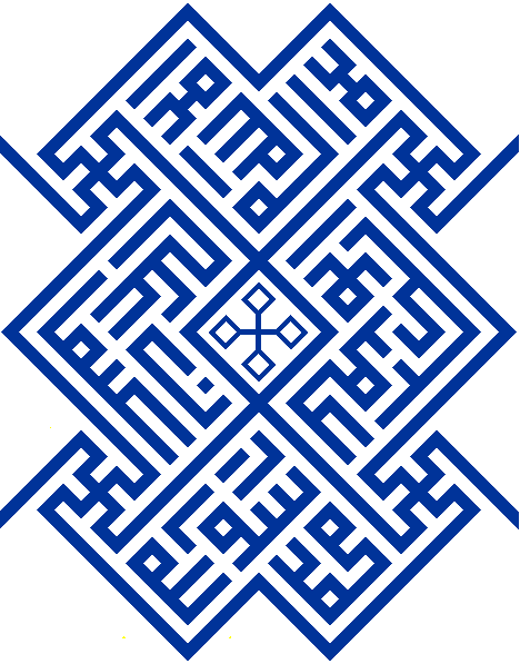 Diese flächige Kalligraphie auf der Außenwand der Sher Dor Medrese ist zusammengesetzt aus pro Feld je 2x "Ja rahman" bzw. 2x "ja rahim", "Allahu akbar" (aufgetrennt in 2 kleine quadratische Felder) - Oh Barmherziger, oh Gnädiger, Gott ist über allem / Gott ist am größten.