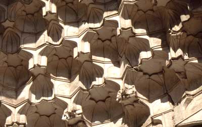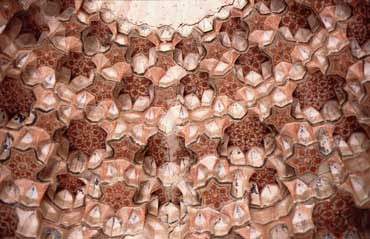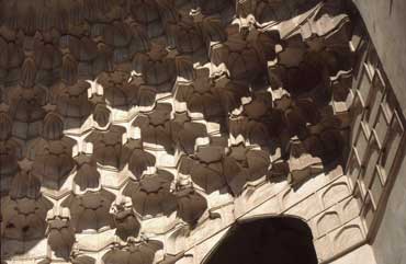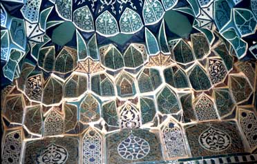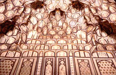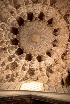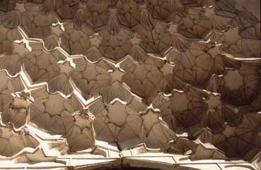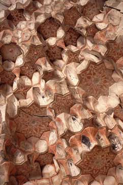 Muqarnas sind ein wichtiges dekoratives Stilelement der islamischen Architektur. Ihr Platz ist meist der obere Abschluß von Nischen oder die unvermeidbaren Zwickel beim Übergang zwischen einer viereckigen Basis und einer Kuppel auf Trompen oder Pendentifs oder die Zone unter Vorkragungen jeder Art. Der Name Muqarnas kommt aus dem Arabischen und bedeutet wörtlich das Erstarrte, Gefrorene. Muqarnas sind meist modular nach einem Plan hoher Geometrie aus polygonalen Elementen aufgebaut, die auf verschiedene Weise gekehlt sind, treppenförmig vorkragend übereinander sowie gegeneinander versetzt angeordnet sind und in ihrer Gesamtheit einen abstrakten und geometrisch anspruchsvollen Übergang formen, der fast an Stalaktiten in Topfsteinhöhlen erinnert und daher auch als Stalaktitendekoration oder Stalaktitengewölbe bezeichnet wird. Die Muqarnas kamen erstmals Mitte des 10. Jh. als damals noch einfaches Architekturelement auf und verbreiteten sich mit zunehmender Komplexität schnell im gesamten islamischen Kulturgebiet von Spanien bis Indonesien. Entsprechend ihres modularen Aufbaus werden Muqarnas auch als Zellengewölbe bezeichnet. Ihr Material ist Gips, Holz, Ziegel, glasierte Keramik oder Stein. Sie können strukturell mit dem Bauwerk verbunden sein oder einfach nur die Oberfläche als Dekor überziehen.