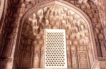 Beispiele für Muqarnas aus der Medrese Abdulaziz Khan in Bukhara, südlicher Innenhof-Iwan