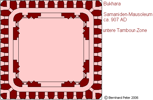 übergeleitet wird. Kuppelbauten wurden in frühislamischer Zeit