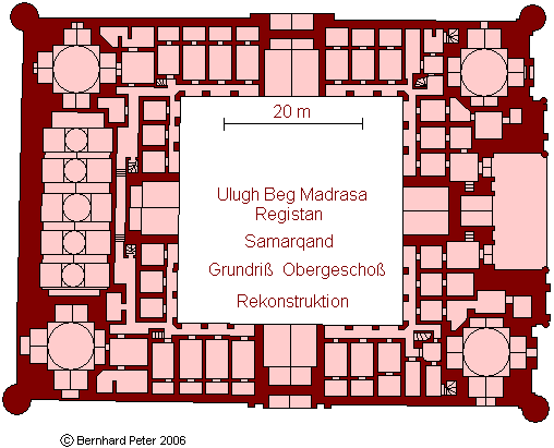 Abb.: Ulugh Beg Madrasa, Registan, Samarqand, Grundriß des Obergeschosses, teilweise Rekonstruktion