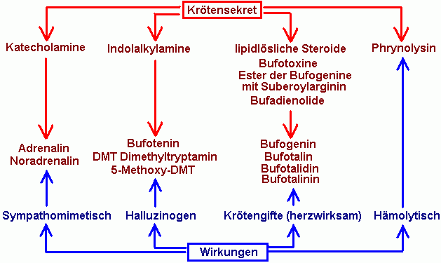 4.) Phrynolysin: Hämolytischer Stoff, hat nichts mit der Rauschwirkung zu tun.