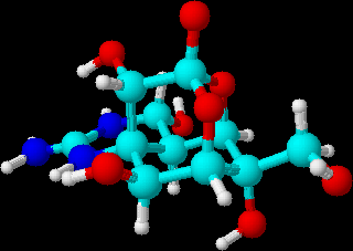 Abb.: Kugel-Stab-Modell des Tetrodotoxins. Man beachte die zwei