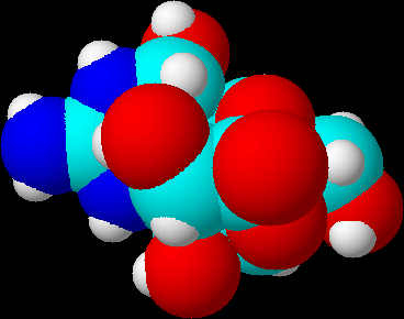 die sechs Hydroxygruppen und de Guanidiniumgruppe.