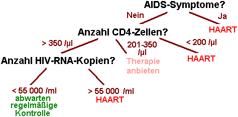 Es sollten auf jeden Fall antiretroviral therapiert werden: Patienten mit einer symptomatischen HIV-Erkrankung, Patienten mit < 200 CD4-Zellen / µl Blut