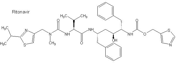 Hemmer der HIV-Protease. Die Hemmung der Protease verhindert die Prozessierung viraler Polyprotein-Vorstufen. Es werden unreife, nicht infektiöse Virus-Partikel gebildet. Ritonavir wird aber alleine heute nur noch in Ausnahmefällen verwendet. Denn wenn man eine therapeutische Dosis (2xtgl. 600 mg) erreichen wollte, wäre das Arzneimittel praktisch ungenießbar wegen der schweren gastrointestinalen Nebenwirkungen (Übelkeit, Erbrechen, Durchfall). Weitere typische Nebenwirkungen sind Kribbeln im Mundbereich, elektrisierende Gefühle an Armen und Beinen (Parästhesien), starke Dyslipidämien (Fettstoffwechselstörungen) und Lipodystrophie (Fettumverteilungsstörung). Ritonavir wird in festen Mischungen mit anderen Protease-Inhibitoren zum Erhöhen deren Plasma-Spiegel (Boostern) eingesetzt. In niedriger Dosis ist Ritonavir das Standardmittel zum Boostern geworden, und in niedriger Dosis kann man mit den Nebenwirkungen leben. Standard-Dosierung zum Boostern: 100-200 mg jeweils zu dem anderen Wirkstoff zusätzlich, Einnahmefrequenz hängt von der des zu boosternden Wirkstoffes ab.