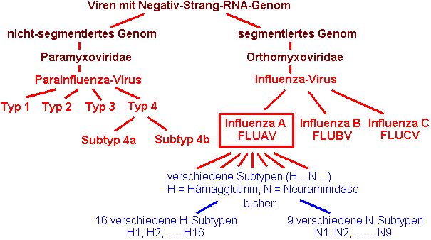 Gewöhnlich zirkulieren vom gefährlicheren A-Typ in der menschlichen Bevölkerung nur wenige Subtypen, die dann auch im empfohlenen Grippeimpfstoff enthalten sind (zur Zeit H1N1 und H3N2). Von Influenza-B und -C gibt es keine Subtypen.