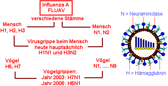 hauptsächlich die Antigene H1, H2 sowie H3 und N1 sowie N2