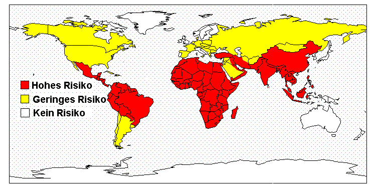 Erhöhtes Infektionsrisiko: Osteuropa, ganz Südostasien, ganz Afrika.