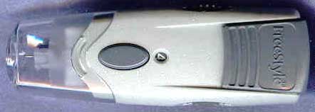 Bild oben: UltraSoft Lanzettengerät, für AST mit der Ultra Clear Kappe gerüstet. Bild unten: Freestyle Lanzettengerät mit AST-Aufsatz.