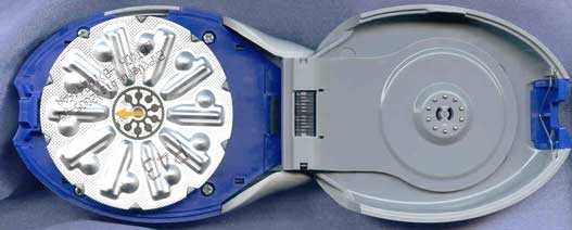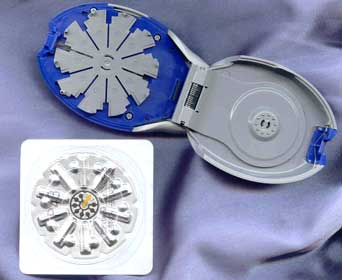 Teststreifen: Ascensia Autodisc, 1 Scheibe mit 10 Teststreifen, Neuladen mit Schieber, Meßbereich 10-600 mg/dl bzw. 0,6-33,3 mmol/l