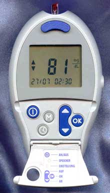 Meßwertanzeige: Es ist möglich, zwischen mg/dl und mmol/l zu wechseln