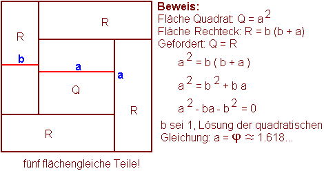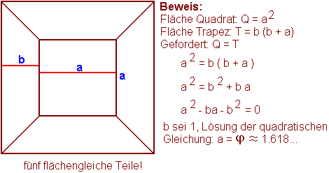 zur Kantenlänge des Quadrates wie der Goldene Schnitt. Wie die