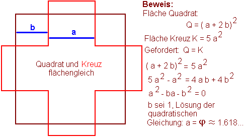 der Quadratseitenlänge zur Kreuzarmbreite wie der Goldene