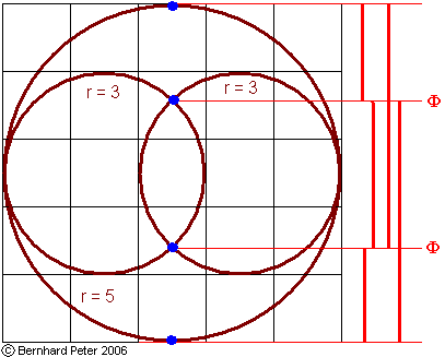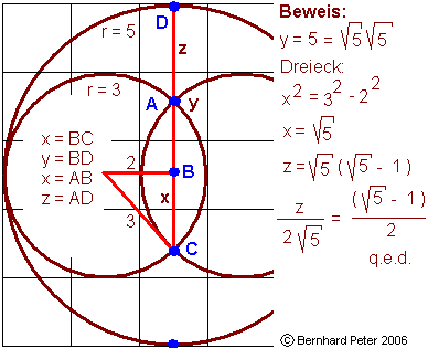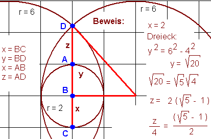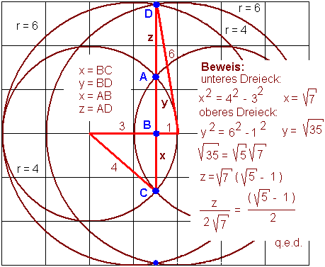 0, die gesuchten Radien sind 3 und 5. Der Goldene Schnitt ergibt