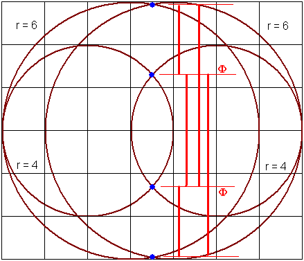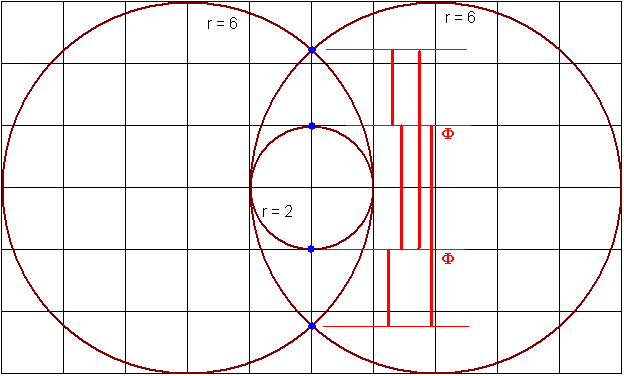 sowie r2 = 6. Die Konstruktion sieht wie folgt aus: