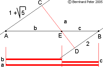 neuen Punkte C und D schneidet die Strecke AB in E, im Goldenen
