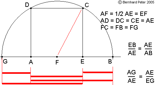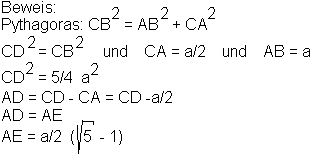 des Goldenen Schnittes verlängert werden. Über der Strecke AE