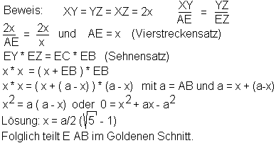 Der Punkt E teilt die Strecke AB im Goldenen Schnitt, der Punkt A