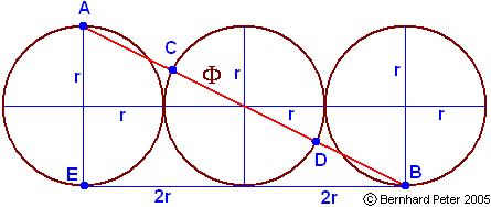 Länge DE wiederum der halben Strecke AB entspricht. Um D wird