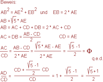 im Verhältnis des Goldenen Schnittes. D teilt den Abschnitt CB