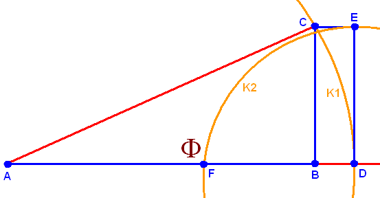 sind 0.618 des Kreisdurchmessers CD. Die Strecken AD und CB sind