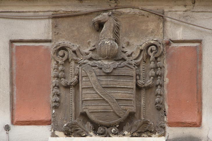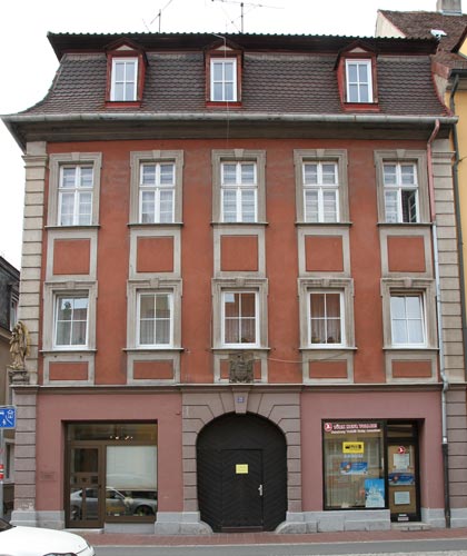 In der Kapuzinerstraße 21 befindet sich dieses dreigeschossige, fünfachsige Haus mit Mansarddach an der Ecke zur Straße Fischerei. Im Kern stammt dieses ehemalige Adelswohnhaus aus dem 16. und 17. Jh.; die Fassadengestaltung hat jedoch die Formen des zweiten Viertels des 18. Jh., und das Dach dürfte noch später entstanden sein. Die Gebäudekanten werden durch genutete Lisenen gestaltet, in die Ecke ist eine Madonnennische eingelassen; die sandsteinerne Figur stammt aus der Zeit um 1730 und wird Johann Adam Nickel zugeschrieben. Im Erdgeschoß befindet sich mittig eine große Hofeinfahrt; die seitlichen Partien sind für Ladengeschäfte aufgebrochen worden und haben dadurch jeden Stil und Charakter verloren. Hinten gibt es einen Hof, den drei im 19. oder frühen 20. Jh. aufgestockte Nebengebäude umschließen.