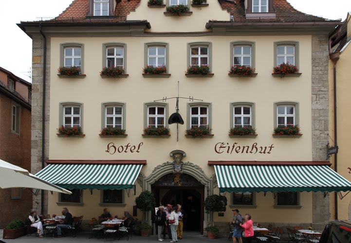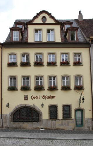 Hotel Eisenhut (eines der vielen zum Hotelkomplex gehörenden ehemaligen Bürgerhäuser), Herrngasse 3: Der Wappenstein ist über dem zentralen Eingangsportal am Schlußstein zu erkennen. Unter dem Schlußstein sind verschlungene Initialen in das Oberlichtgitter eingefügt nebst der Jahreszahl 1759. Das über mittelalterlichem Kern im Barock erbaute Haus, ein dreigeschossiger verputzter Eckbau mit Walmdach, Sandsteingliederung und Zwerchhaus mit geschwungenem Giebel war erst ein Patrizierhaus, dann wurde es Weinstube, nun ist es Hotel.