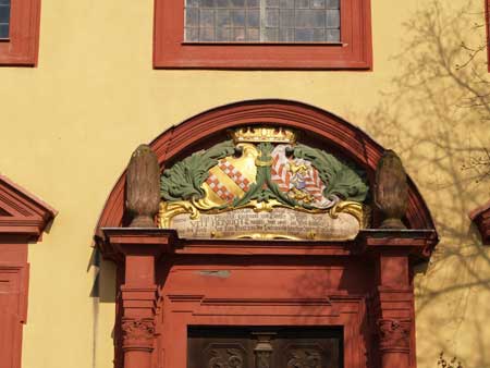 weggefaulten Bohlen, das Wappen über dem Eingang