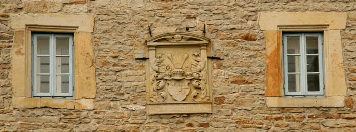 der Wappenstein zwischen den Fenstern zu erkennen.
