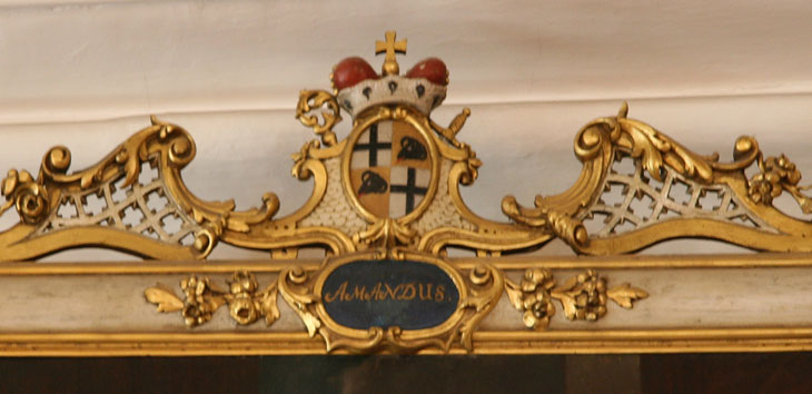 Amand von Buseck (regierte 1737-1756), Fürstabt 1737-1752, Fürstbischof ab 1752, Eltern: Philipp Franz Edmund Freiherr von Buseck Herr zu Eppelborn, Maria Antonia Amalia von Fechenbach zu Sommerau, Großeltern für die 4er-Ahnenprobe in den Ecken des Bilderrahmens: Conrad Philipp von Buseck, Maria Margaretha von Löwenstein zu Randeck, Adolf Ernst von Fechenbach, Johanna Elisabetha von Breidenbach zu Breidenstein.