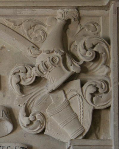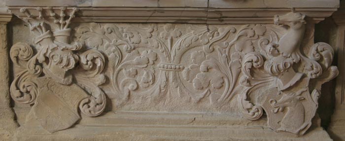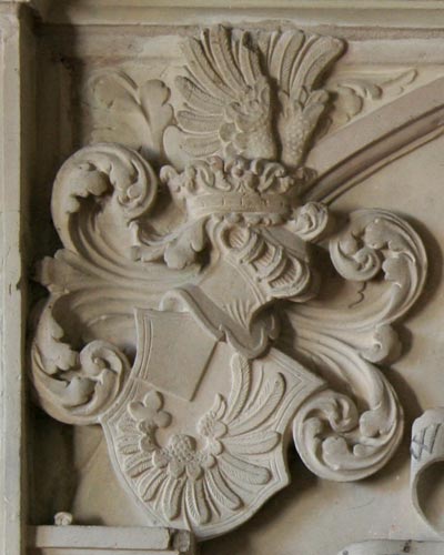Am Sockel des Epitaphs befinden sich zwei weitere Vollwappen, dieses sind die jeweiligen mütterlichen Wappen: